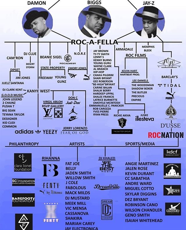 Damon “Dame” Anthony Dash, is an American entrepreneur, record executive, film producer, director and actor. Dash is best known as co-founder of Roc-A-Fella & Rocawear along with Shawn “Jay-Z” Carter. Founder of Dame Dash Studios, a streaming platform for millennial trendsetters. | Roc A Fella Family Tree